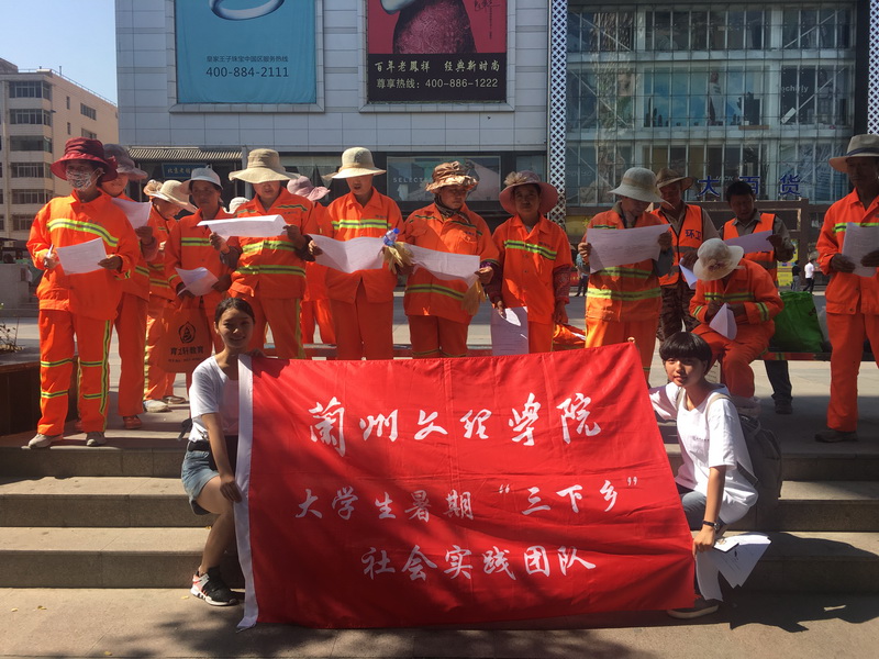 随着社会经济的发展,城市环境状况不仅是代表城市的最直观名片,同时也反映了城市的管理和文化水平。近年来,在各级政府的强势领导和组织,各部门分工协作,运用各种手段,在辖区单位和广大市民的共同支持和努力下,兰州市城市环境面貌发生了巨大的变化,在全国环境治理工作中起到了示范作用。在兰州重返久违了的“兰州蓝”的同时,兰州的环境治理问题也越来越成为备受人们关注的话题。 为了进一步了解兰州市城市环境综合治理的状况,分析影响和制约提升环境治理水平的瓶颈,增强社会和广大市民、员工等自觉爱护和保护环境的意识,为兰州市创建国家文明城市营造良好的氛围,7月26-31日经管公司暑期社会实践团在兰州市展开环卫工作一线职工的专项调查问卷活动。 对环卫工作一线职工进行专项调查问卷是本次实践活动中开展的三项调查问卷之一。小分队成员将深入兰州市各区环卫市政管理所、社区、街道,以实地走访、问卷调查、深度访谈等方式,通过环保部门管理者、环卫工人、市民调研兰州市特殊自然条件下的环境治理的现状,找出兰州治理环境的主要经验,将这些经验和方法总结出规律并提出一些建议。 (撰稿:谈静 摄影:胡琪雅) 撰稿: