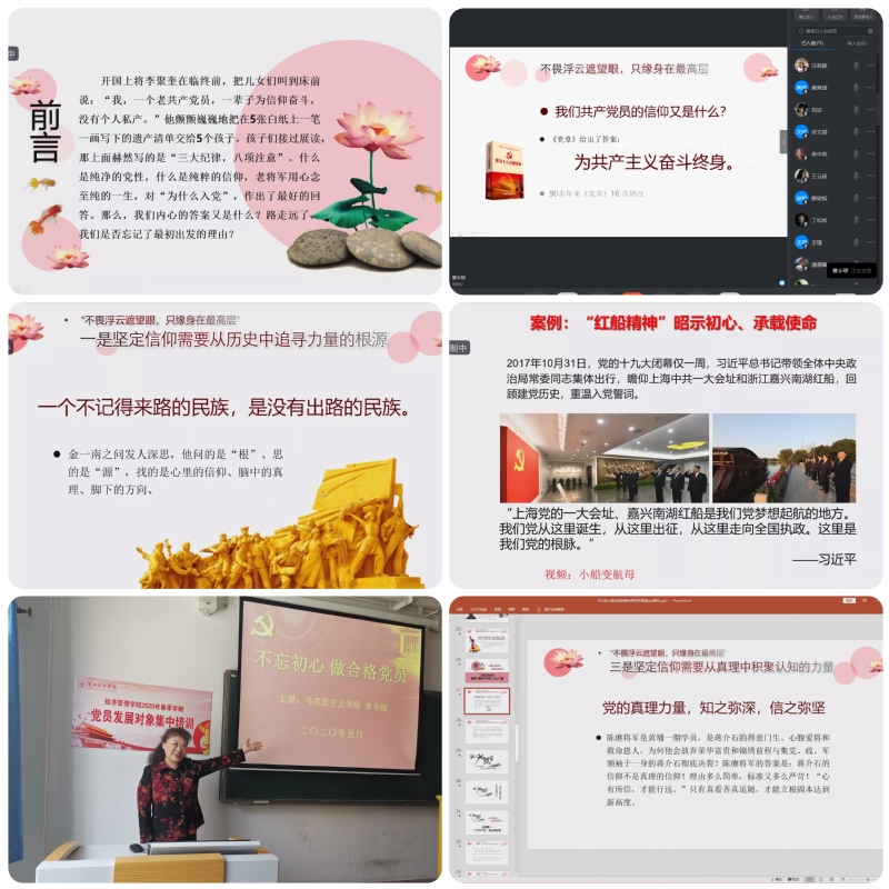 本次培训以学习十九大精神和习近平新时代中国特色社会主义思想主线,安排了《中国共产党章程》、《中国共产党支部工作条例》和《关于新形势下党内政治生活的若干准则》、党规党纪和十九届四中全会精神的专题学习,邀请马克思主义公司曾令琼、费翔教授和公司分党校兼职教师石晶、吴熹、于洋等集中授课,通过钉钉平台云课堂指派疫情防控专题视频课、入党基本知识及学习思考资料,为培训同学提供了多方位接收党性教育的学习素材。 通过培训,进一步巩固发展对象对党的历史和知识的学习,深化对中国特色社会主义最本质特征和最显著优势的认识,增强了对国情、省情、校情的了解和讲好传承红色故事、中国故事的自信。对今后更加坚定政治立场,自觉做到两个“坚决维护”提供了必备的支撑,为员工党支部接收新党员做好了准备工作。 (撰稿:妥娅雯 图片:参训员工)