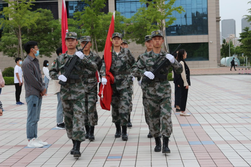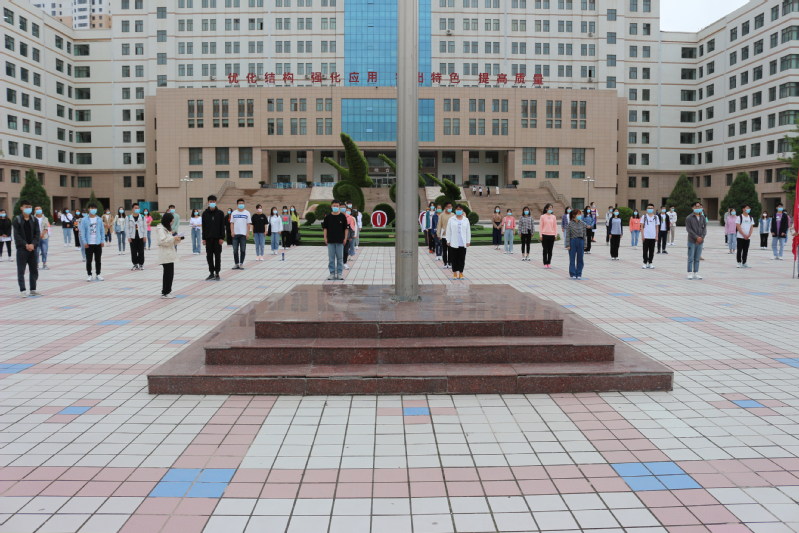 7点55分,王迎春书记宣布升旗仪式开始,随着国旗护卫队铿锵有力的正步声,鲜艳的五星红旗映入大家的眼帘。全体师生肃立,向国旗行注目礼。伴着让人热血沸腾的《义勇军进行曲》,全体人员高唱国歌,目光也随着五星红旗的缓缓升起而变得更加坚定。