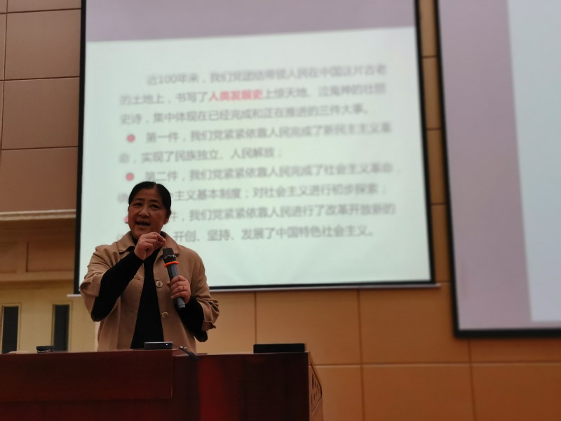 马克思主义公司孙红英教授在报告会上,从中国共产党在建党初期对中国革命的探索、党史学习教育的重要意义、党史学习教育的重点等三个方面,围绕党的“一大”制定和通过《第一个纲领》和《第一个决议》;党的“二大”提出的反帝反封建的民主革命纲领;党的“三大”确定国共合作的统一战线方针以及党的“四大”提出无产阶级在民主革命中领导权问题的主要内容等,向大家介绍了中国共产党领导全国各族人民先后取得中国革命胜利,深入阐释了共产党人的初心使命和时代担当,为大家上了一堂内涵丰富、生动活泼的党史教育课。使同学们受益匪浅,更加明确了党史学习教育的重大意义。 通过此次学习,参加此次宣讲的全体学员纷纷表示,在“两个一百年”奋斗目标历史交汇的关键节点,定会铭记党的光辉历史,学思践悟、身体力行。要把党史学习教育当作一次传承红色基因、坚定理想信念的精神磨砺,做到学史明理、学史增信、学史崇德、学史力行。 (撰稿:胡琪雅,摄影:马龙) 撰稿: