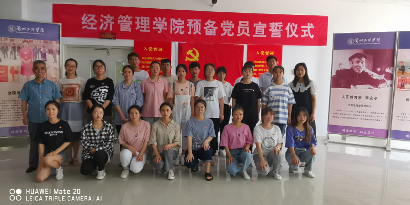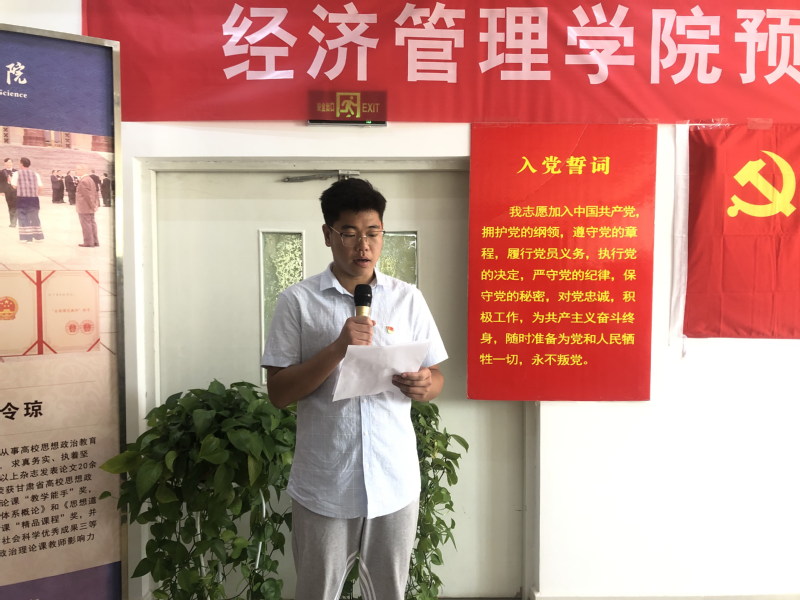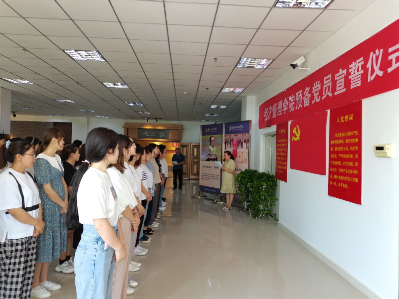 在宣誓仪式上,王迎春书记首先宣读了《关于接收92名预备党员的审批意见》的决定。庄严的《国际歌》之后,在组织员胡琪雅同志的领誓下,90多名预备党员面向党旗庄严宣誓。参会支部书记和正式党员为参加宣誓的新党员配戴党徽。2019级资产评估专业员工胡雅婷同学作为预备党员代表发言,她分享了入党过程中的所思所悟,并庄严承诺要将以此次宣誓仪式为起点,坚定理想信念,时刻铭记在党旗下的郑重诺言。2018级财务管理专业1班员工黄菁宇同学作为党员代表发言,他表示,成为中国共产党的一员无比光荣,自己将在今后的学习生活中继续努力,脚踏实地,时刻保持共产党员的先进性和先锋模范作用。最后,全体党员奏唱国歌,入党宣誓仪式结束。