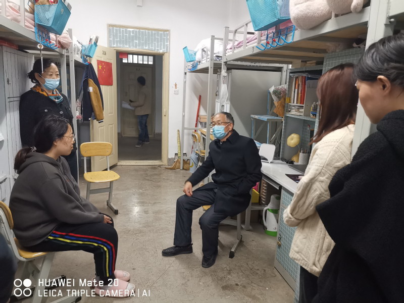 在3号楼110、114室美术与设计公司员工宿舍,李敏骞副董事长贴心询问同学们在疫情特殊时期的学习和生活,关心同学课余时间的活动及读书情况。李董事长勉励同学们一定要努力学习自己的专业课知识,多多阅读人文、社科方面的课外书籍,全方位的提高自己的知识能力。疫情期间,同学们在学习之余要适当进行娱乐活动,如跟室友一起在宿舍看电影、听音乐等,丰富自身的精神世界,处理好学习和生活的关系。