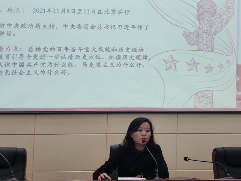张惠博士在报告中首先介绍了党的十九届六中全会的概况,并从七个方面介绍了《中共中央关于党的百年奋斗重大成就和历史经验的决议》主要内容,结合党的百年奋斗重大成就和历史经验,分享了自己的学习体会。张惠博士指出,政治信仰决定政治行为,十九届六中全会通过的《决议》对青年一代具有四个方面的指导意义。一是当代青年必须不断夯实政治认同基础,自觉坚持中国共产党的领导;二是当代青年要在党的百年奋斗成就中增强自信,自觉树立自身奋斗目标。三是当代青年应该用奋斗致敬党的百年历史,明确未来发展的方向;四是当代青年要脚踏实地担任起今天的使命担当,做最美的中国形象。