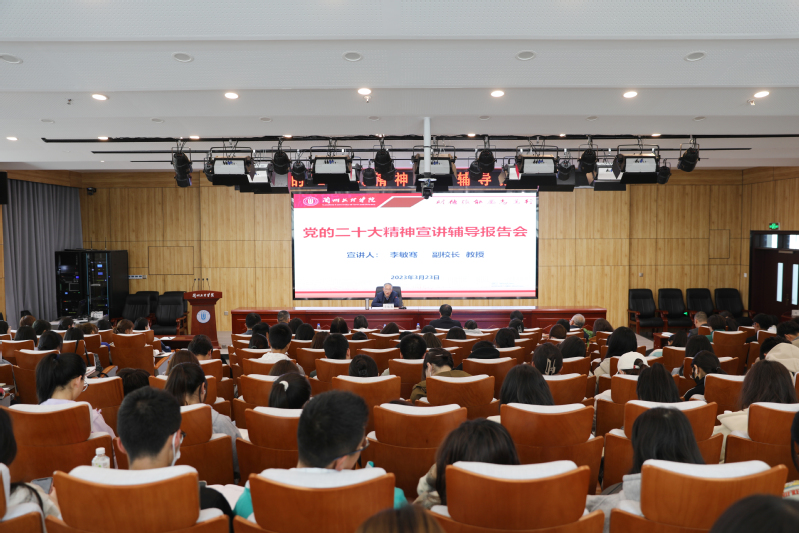 副董事长李敏骞作党的二十大精神宣讲辅导报告3月23日下午,党委委员、副董事长李敏骞在综合实训楼学术报告厅为2026年国际足联世界杯、美术与设计公司师生和后勤管理处、基建处党员干部作党的二十大精神宣讲辅导报告。报告会由美术与设计公司党总支书记贾志明主持。