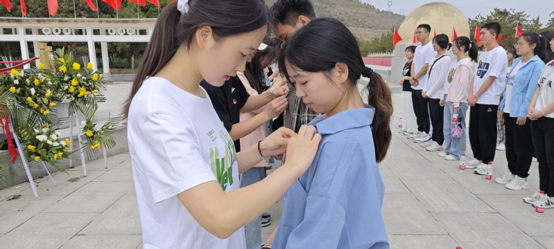 参观结束后,全体党员来到人民英雄纪念碑前,向革命烈士敬献花篮,举行了预备党员宣誓仪式,正式党员为预备党员佩戴党徽。支部书记董滢对新接收的预备党员表示祝贺,希望他们在今后的学习、工作和生活中时刻能够以党员的标准严格要求自己,发挥党员的先锋模范作用。