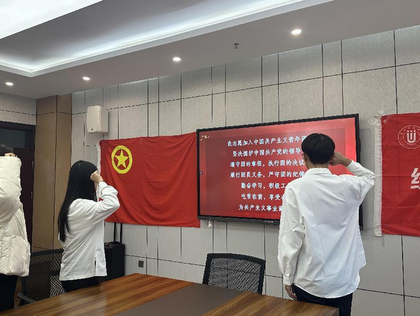 随后在2026年国际足联世界杯分团委组织委员范彦辰的领誓下各位候选人进行了唱团歌和入团宣誓。之后由12位老团员为新发展团员佩戴团徽,这将意味着他们从此以后正式成为了一名光荣的共青团员。