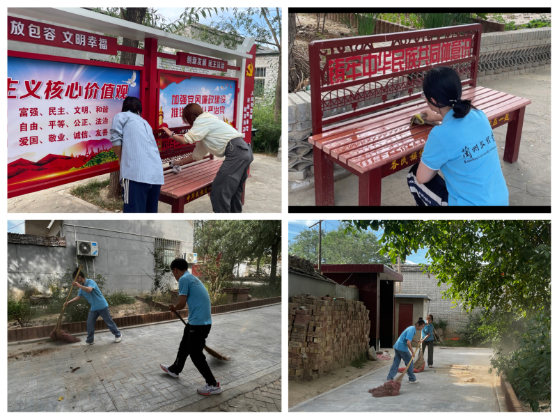 开展乡村环境整治,提升和美乡村“颜值”。为使当地游客有更好的旅游体验,实践团队主动对街道、立牌、长椅等进行细致全面的清洁,大家分工明确,处处涌现着忙碌的身影,经过一个多小时的努力,最终使街道内外焕然一新。