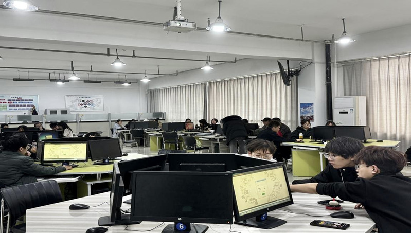 公司9支团队在明德楼703实验室参加创业之星活动,员工通过加入同一行业中竞争的若干企业,在仿真的竞争市场环境中,通过分岗位角色扮演,经过4个季度的经营,体验企业数字化转型,实现盈利的过程。