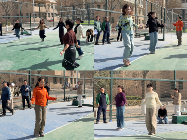 理论学习后,全体党员移步体育场,开展“绳彩飞扬展活力”跳绳系列活动。大家踊跃参与、协作互动,在轻松愉悦的氛围中舒展身心、增进交流,展现出昂扬向上、团结奋进的精神风貌。
